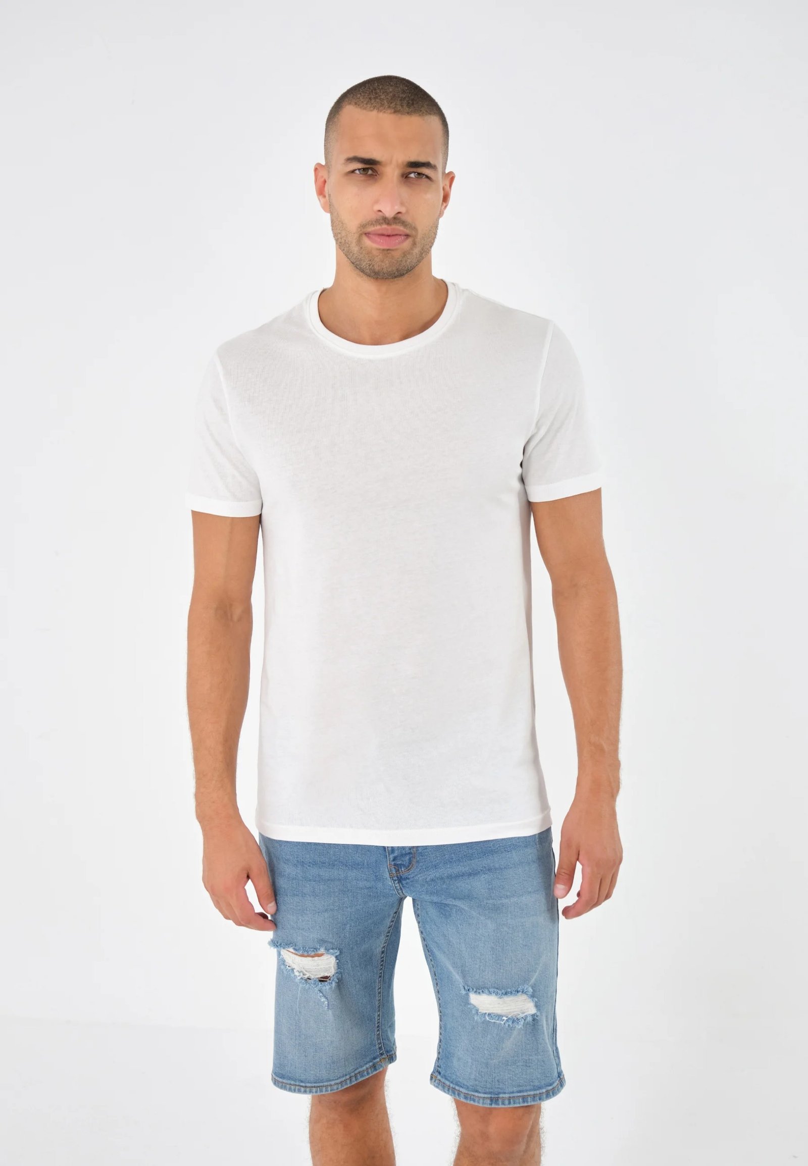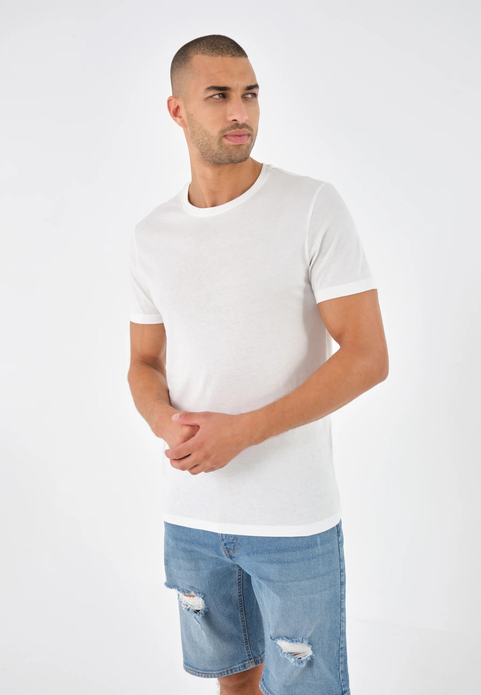 Camiseta em 100% algodão penteado Fio 30.1, com gramatura de 180 g/m², que garante toque macio, caimento confortável e alta durabilidade.