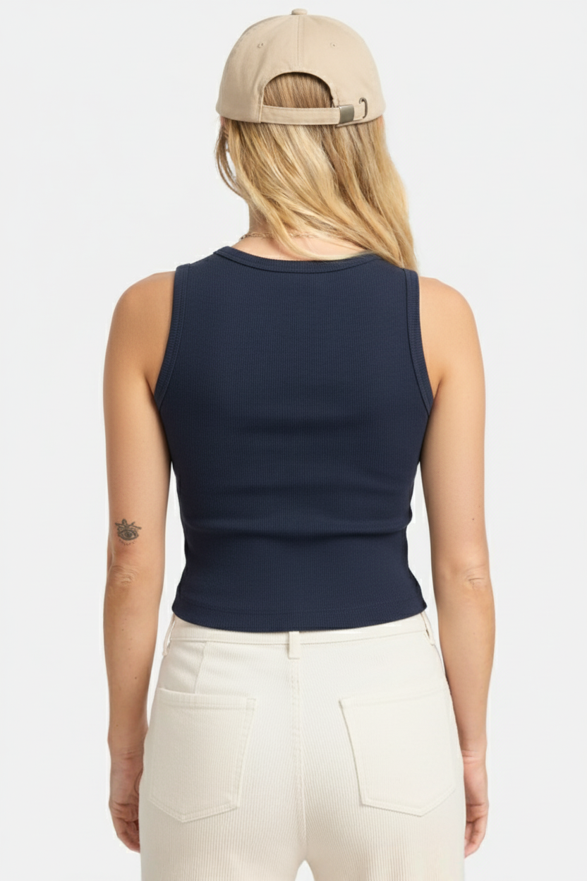 A regata feminina canelada é uma peça essencial e versátil do guarda-roupa feminino. Confeccionada em ribana de algodão com elastano, possui modelagem ajustada ao corpo, toque macio e alta elasticidade, garantindo conforto no dia a dia. O decote arredondado torna a peça ideal para compor looks casuais ou mais sofisticados.